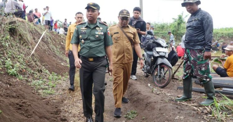 Kediri – Komandan Kodim 0809/Kediri Letkol Inf Ragil Jaka Utama, S.Hub., Int., M.H meninjau langsung pembangunan Jembatan Gantung Garuda yang menghubungkan Dusun Ringinagung, Desa Keling, Kecamatan Kepung dengan Desa Klampisan, Kecamatan Kandangan, Kabupaten Kediri, Minggu (14/12/2025).