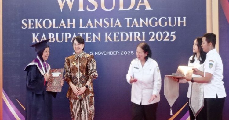 Kediri - Pemerintah Kabupaten (Pemkab) Kediri melalui Dinas Pengendalian Penduduk, Keluarga Berencana, Pemberdayaan Perempuan, dan Perlindungan Anak (DP2KBP3A) Kabupaten Kediri menggelar Wisuda Sekolah Lansia Tangguh (Selantang) Kabupaten Kediri Tahun 2025 berlangsung di gedung Bhagawanta Bahari Jalan Pamenang Ngasem Kabupaten Kediri, Rabu (5/11/2025) pukul 10.00 WIB.