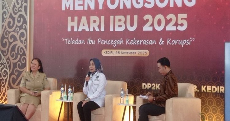 Kediri - Menyongsong Hari Ibu Tahun 2025, Pemerintah Kabupaten Kediri melalui DP2KBP3A Kabupaten Kediri memberikan edukasi dan pemahaman kepada ratusan istri Kades dan pengurus PKK se-Kabupaten Kediri yang bertajuk 'Teladan Ibu Pencegahan Kekerasan dan Korupsi'. Kegiatan ini berlangsung di Gedung Bhagawanta Bahari Ngasem Kabupaten Kediri, Selasa (25/11/2025).