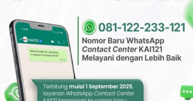 Kediri - PT Kereta Api Indonesia (Persero) Daerah Operasi 7 Madiun menginformasikan kembali adanya perubahan nomor layanan WhatsApp Contact Center KAI121 yang resmi berlaku mulai 1 September 2025. Manajer Humas KAI Daop 7 Madiun Rokhmad Makin Zainul menjelaskan bahwa perubahan ini tidak akan mengurangi kualitas layanan pelanggan. Justru, KAI berkomitmen menghadirkan layanan yang lebih baik, cepat, dan responsif.