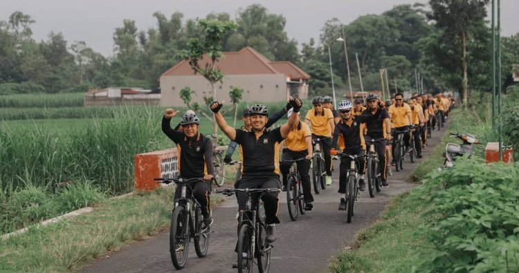 Ratusan personel Polri dan ASN Polres Kediri Polda Jatim mengikuti kegiatan olahraga bersepeda bersama Kapolres Kediri AKBP Bramastyo Priaji.