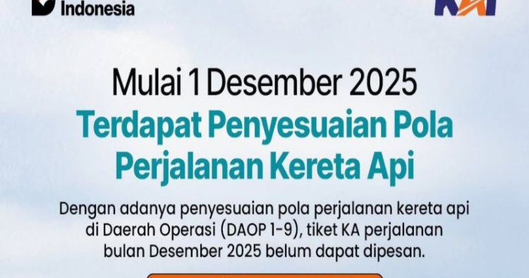 Kediri - PT Kereta Api Indonesia (Persero) akan melakukan penyesuaian jadwal dan pola perjalanan kereta api di seluruh wilayah operasional, termasuk di wilayah kerja Daop 7 Madiun, mulai 1 Desember 2025. Langkah ini dilakukan untuk meningkatkan keselamatan, efisiensi operasional, dan kenyamanan pelanggan.