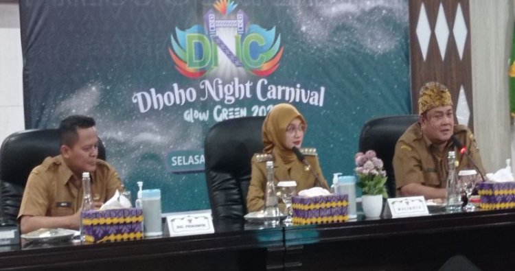Wali Kota Kediri Vinanda Prameswati didampingi Kadisbudparpora Kota Kediri Bambang Priyambodo dan Kabag Prokopim Adi Sutrisno dalam keterangan pers di ruang Jayabaya Balai Kota Kediri mengungkapkan, acara Dhono Night Carnival tahun ini mengusung tema Glow Green dipilih untuk menyampaikan pesan pelestarian lingkungan di sekitar masyarakat.