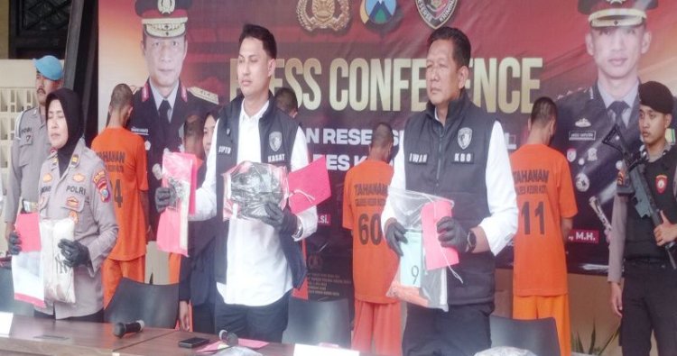 Kediri - Satreskrim Polres Kediri menggelar konferensi pers ada beberapa kasus yang berhasil mengamankan pelaku dan barang bukti kejahatan. Mulai dari kasus 1 curat, 3 curanmor dan 2 kasus tindak pidana pencabulan atau persetubuhan terhadap anak yang disampaikan Kasat Reskrim dihadapan awak media berlangsung di Lapangan Tengah Mako Polres Kediri Kota, Senen (8/12/2025) siang.