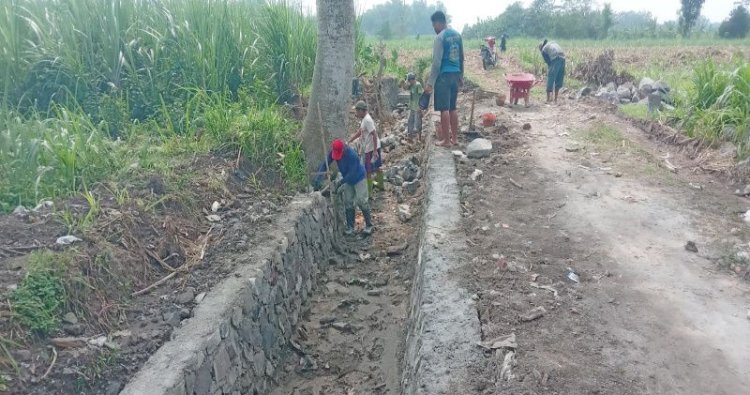 Pelaksanaan rehabilitasi saluran irigasi di Kelurahan Ngletih untuk mengamankan saluran irigasi dari resiko kehilangan air dan longsoran tanah di kiri kanan saluran tersebut.