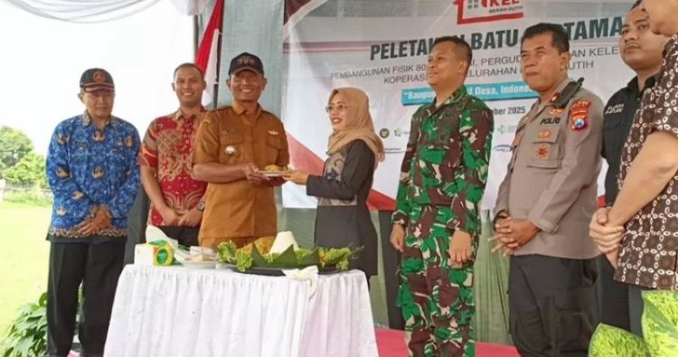 Kediri - Wakil Bupati Kediri Dewi Mariya Ulfa menghadiri ground breaking pembangunan koperasi desa/kelurahan merah putih (KMP) di Desa Brenggolo, Plosoklaten, Jumat (17/10/2025)
